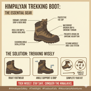 Appropriate footwear could make your life easy if you are out there in the Himalayas for trekking either for fun or for pilgrimage and inappropriate footwear can risk your safety.